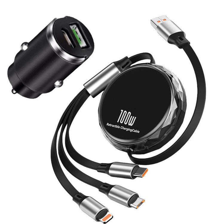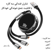 شارژر فندکی خودرو سه کاره هوشمند 100 وات با قابلیت جمع شوندگی خودکار - مدل مشکی